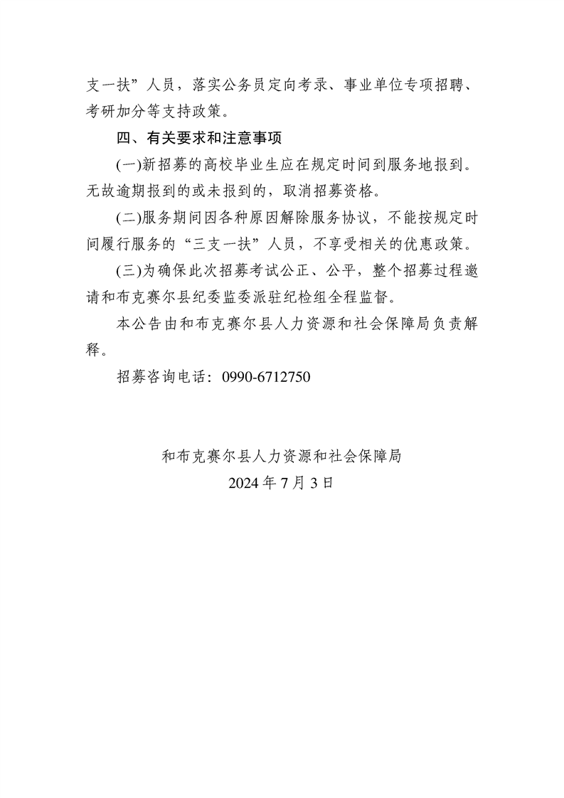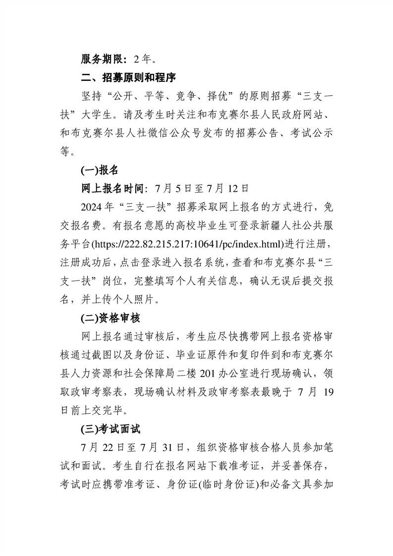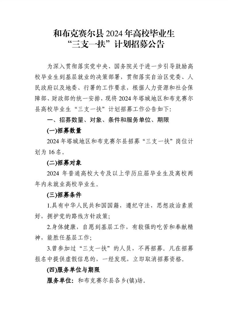 和布克赛尔县2024年高校毕业生“三支一扶”计划招募公告