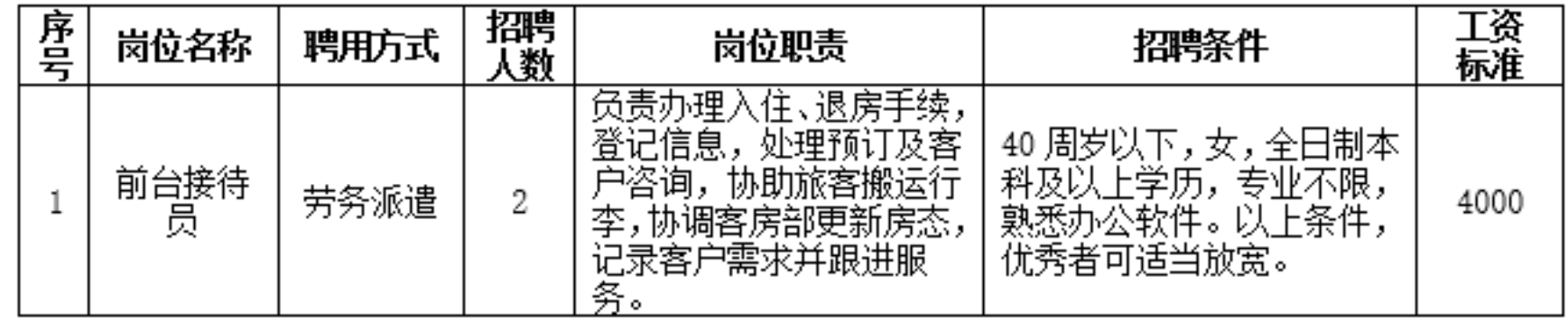 春天宾馆(国有企业)现面向社会公开劳务派遣制工作人员。具体事项公告如下: