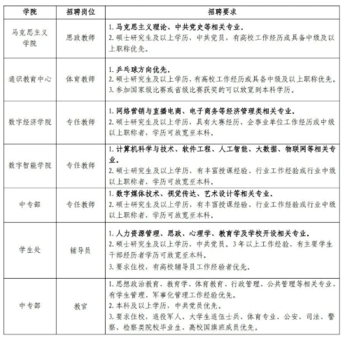 招聘若干人25个岗位
