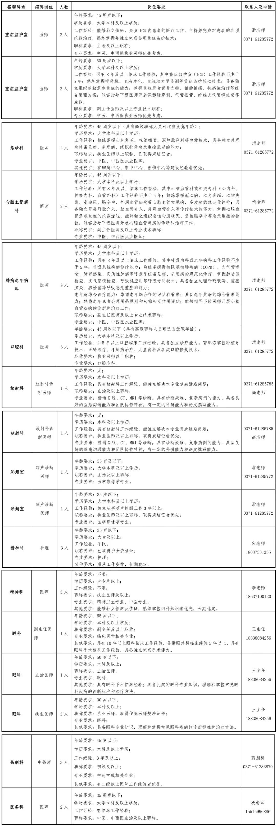 2.应聘地点:郑东新区商都路19号(郑州市管城中医院)