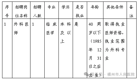 (六)具备岗位要求的执业资格或专业技术资格(取得执业医师资格,执业范围为外科专业)。