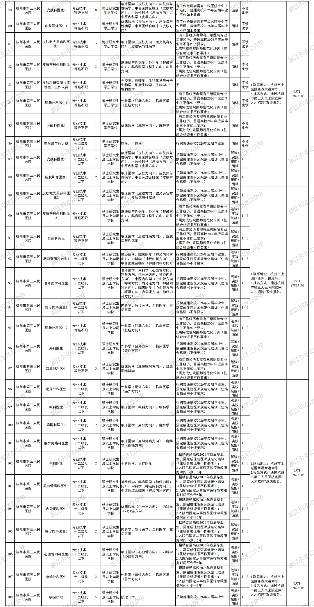 根据工作需要,杭州市卫生健康委员会所属杭州市第一人民医院、杭州市第三人民医院等18家事业单位决定面向社会公开招聘高层次人才514名。按照《中共中央组织部人力资源社会保障部关于进一步做好事业单位公开招聘工作的通知》(人社部发〔2024〕57号)和《关于进一步做好浙江省事业单位公开招聘工作的通知》(浙人社发〔2024〕72号)等文件规定,现将有关事项公告如下: