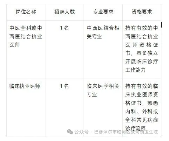 为进一步充实我院医疗专业人才队伍,提升基层医疗服务能力,更好地满足双河镇及周边群众日益增长的健康需求,现面向社会公开招聘中西医执业医师、临床执业医师各1名,具体事项公告如下: