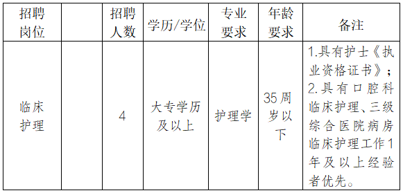 舟山市口腔医院因工作需要,现面向社会公开招聘编外工作人员4名,有关事项公告如下: