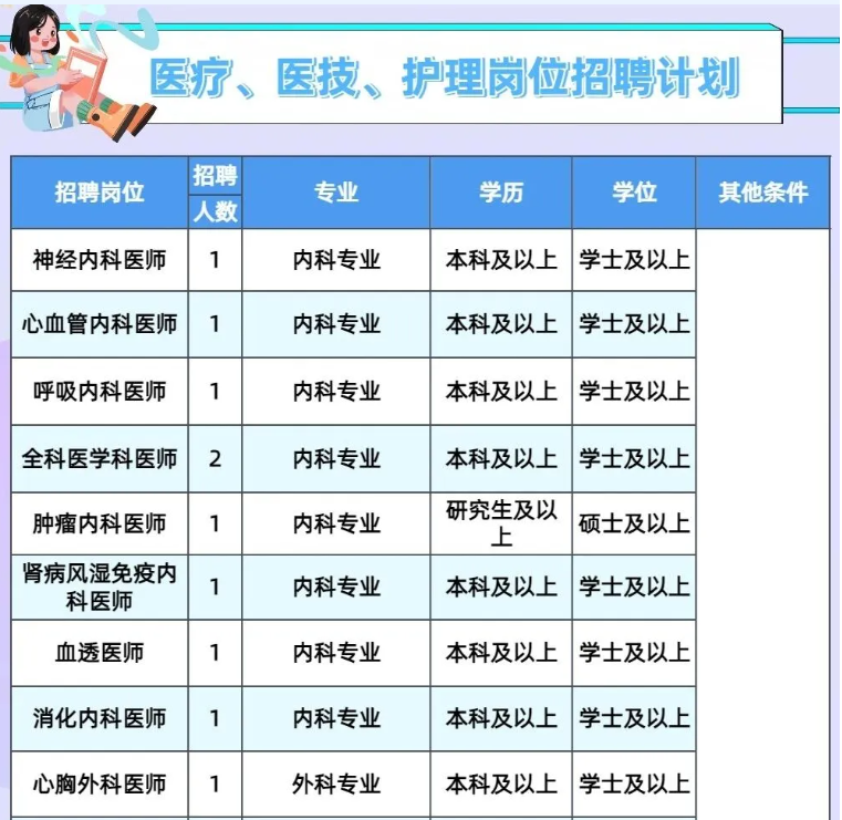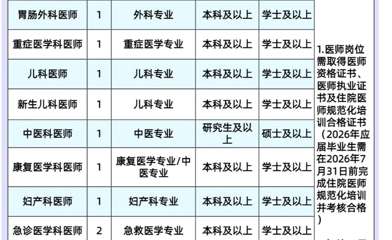 3.医院紧缺型岗位:重症医学专业医师给予安家费20万元(税前);营养专业医师、皮肤科专业医师给予安家费10万元(税前)。