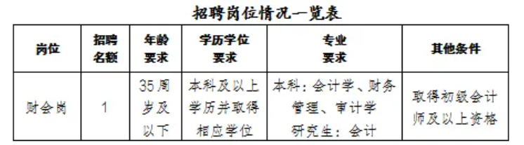 根据工作需要并报经区卫健委同意,拟面向社会公开招聘财务人员1名。