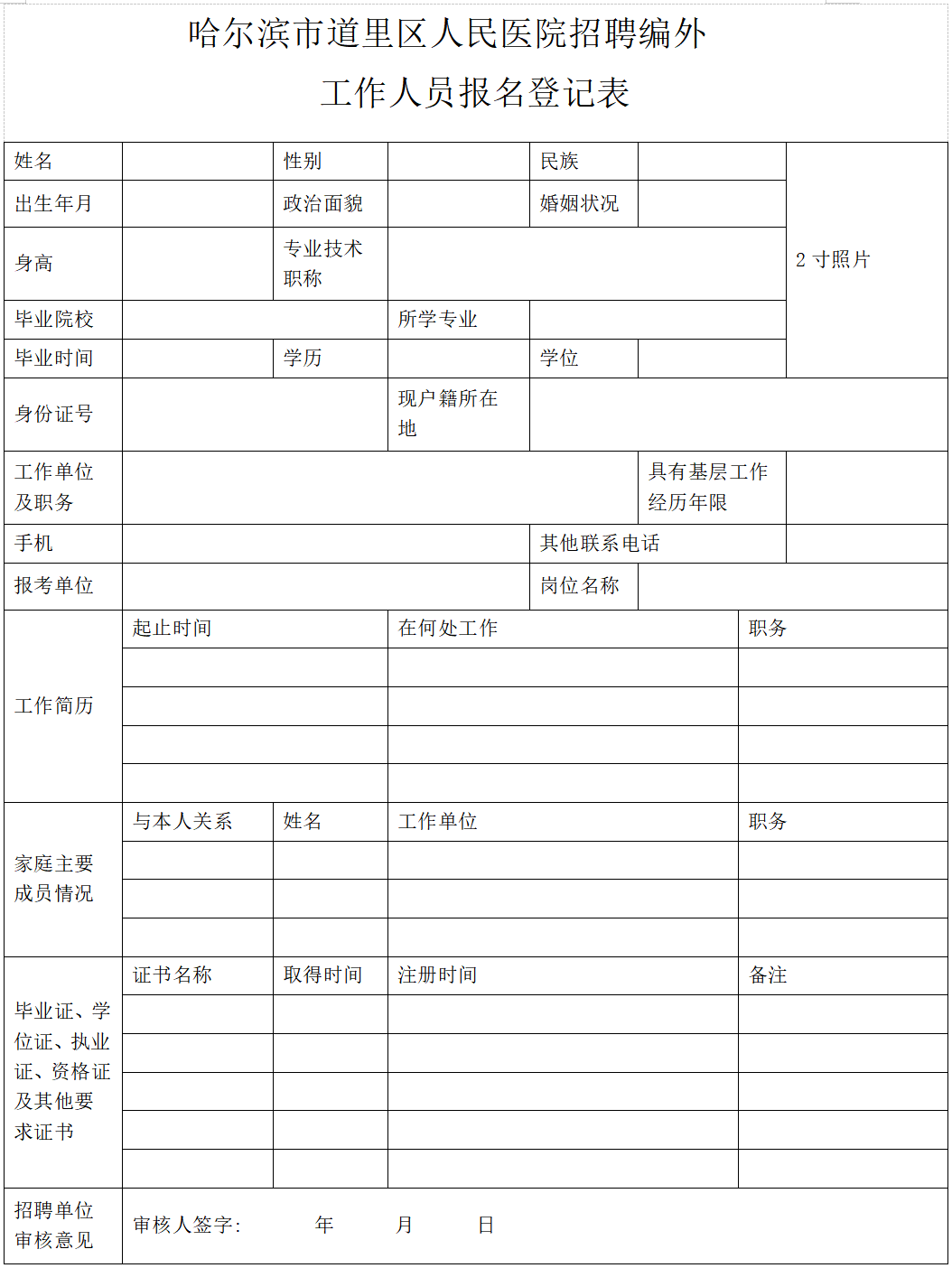 4.报名地点:哈尔滨市道里区人民医院院内13楼人事科