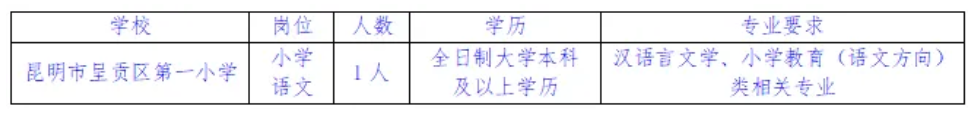 本次招聘工作由昆明市呈贡区第一小学组织,该岗位不设开考比例,不收取报名及考试费用。