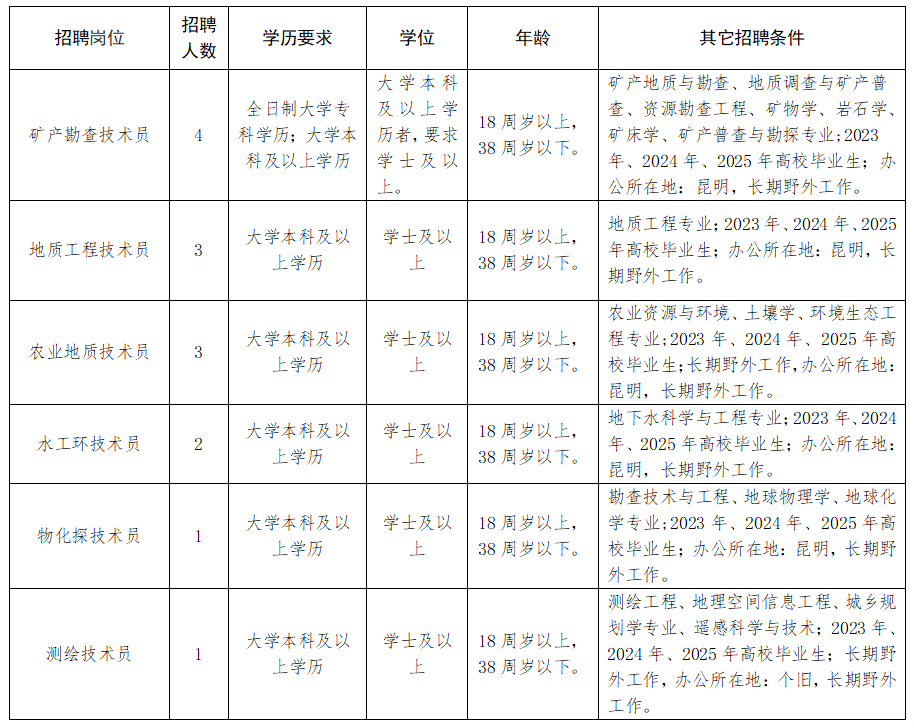 云南省有色地质局三0八队所属云南金色地质勘查技术有限公司根据工作需要,现面向社会公开招聘工作人员。现将有关事宜公告如下: