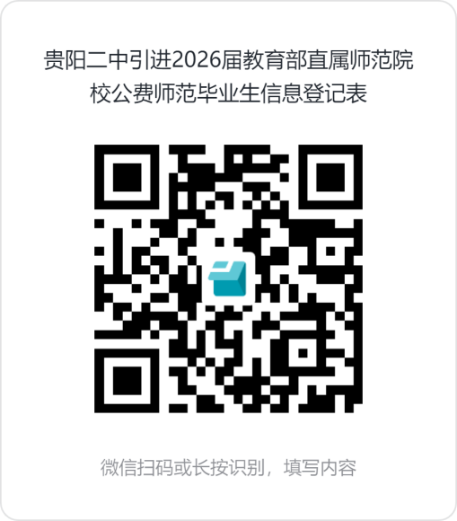 1.凡符合应聘条件者,请扫下方二维码如实填写《贵阳二中引进2026届教育部直属师范院校公费师范毕业生信息登记表》,填写时请保证所提供的个人信息真实有效,若因提供虚假信息或隐瞒相关情况影响录用的,后果自行承担。