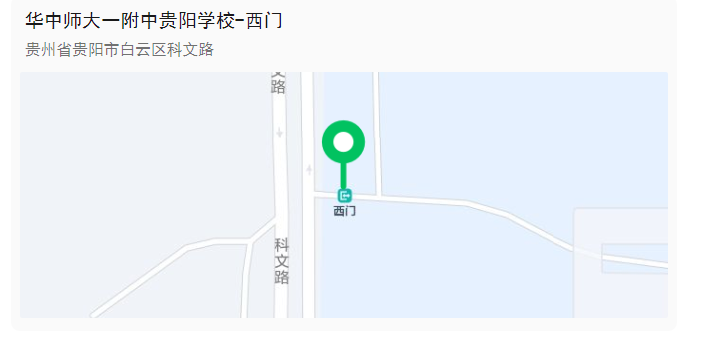 学校地址:贵阳市白云区科文路,导航地址为“华中师大一附中贵阳学校西门”。