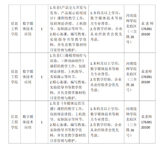 报名方式:请联系相关学院负责人,提交个人简历(包括个人基本信息、教育背景、工作经历、教学成果、联系方式等)、身份证、学历证书、专业资格证书、相关教学经验证明等相关资料复印件。