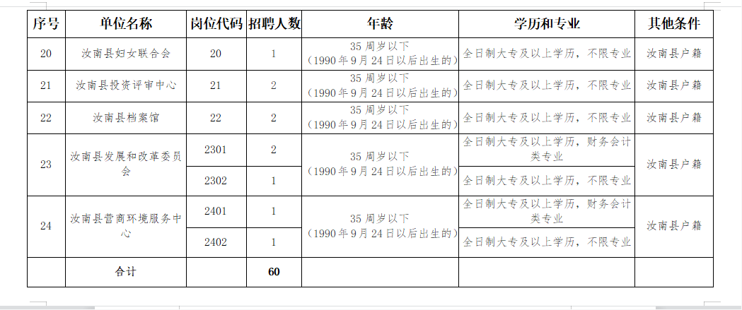 招聘工作协理员60人(具体岗位及要求详见附件1)