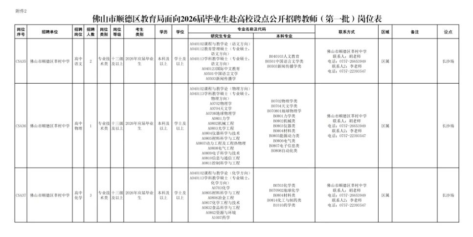 招聘基本条件、招聘程序及要求、有关事项,按照《佛山市顺德区教育局面向2026届毕业生赴高校设点公开招聘教师(第一批)公告》执行。