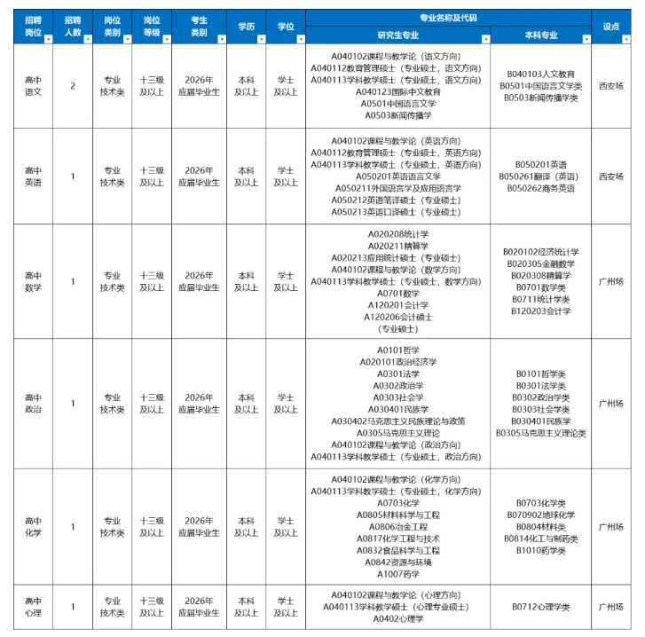 (2)广州场:高中数学1人、高中政治1人、高中化学1人、高中心理1人。
