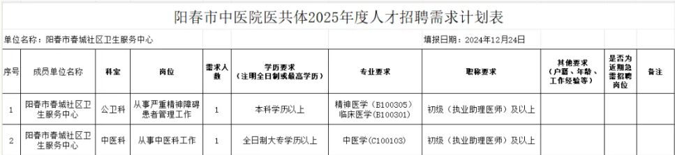 五、本次招聘最终解释权归阳春市春城社区卫生服务中心所有。
