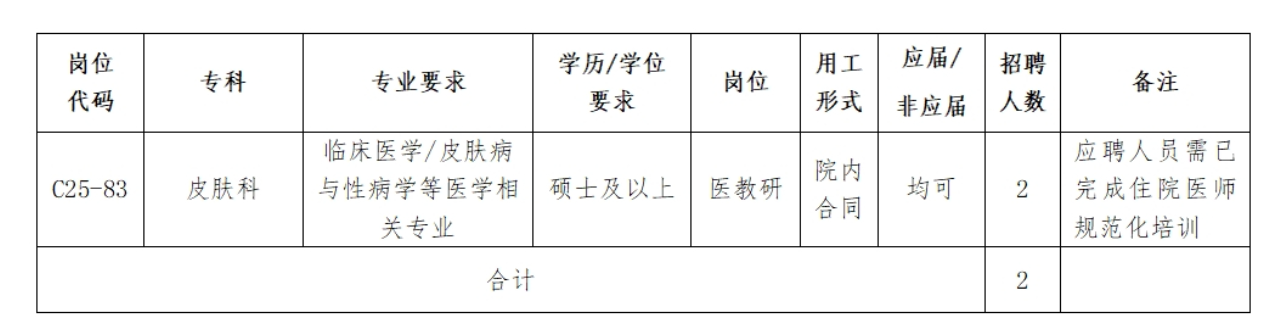 我院皮肤科因工作需要,面向社会公开招聘医教研岗位2名,现将有关事项公布如下: