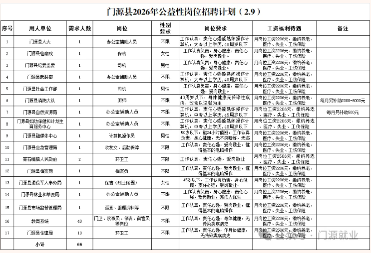 招聘66人17个岗位