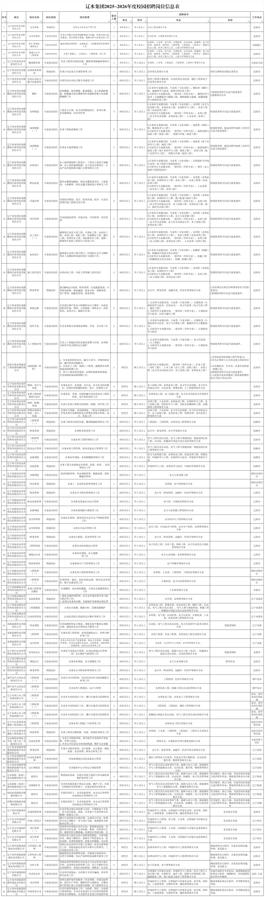 附件1:辽水集团2025-2026年度校园招聘岗位信息表.xlsx(点击下载)