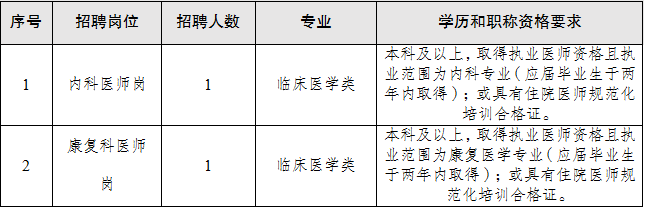 因工作需要,重庆市璧山区第二人民医院现面向社会公开招聘临聘工作人员2人(内科医师岗1人、康复科医师岗1人)。