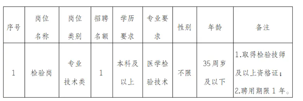 根据医院业务发展需要,现面向社会公开招聘非在编检验类专业技术人员,具体要求如下: