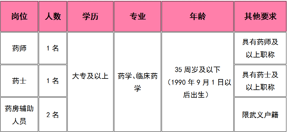因工作需要,经研究决定面向社会公开招聘药师、药士及药房辅助人员,有关事项公告如下:
