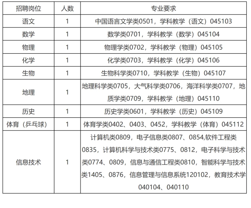 1.本科及以上学历学位(如以国外硕士研究生及以上学历报考的须在入职前提供经教育部留学服务中心认证的《国外学历学位认证书》),愿意并有能力承担基础学科教学以外的学生活动或心理成长指导工作,认同学校办学理念和教育价值追求。