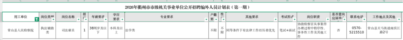 常山县人民检察院公开招聘1名司法雇员
