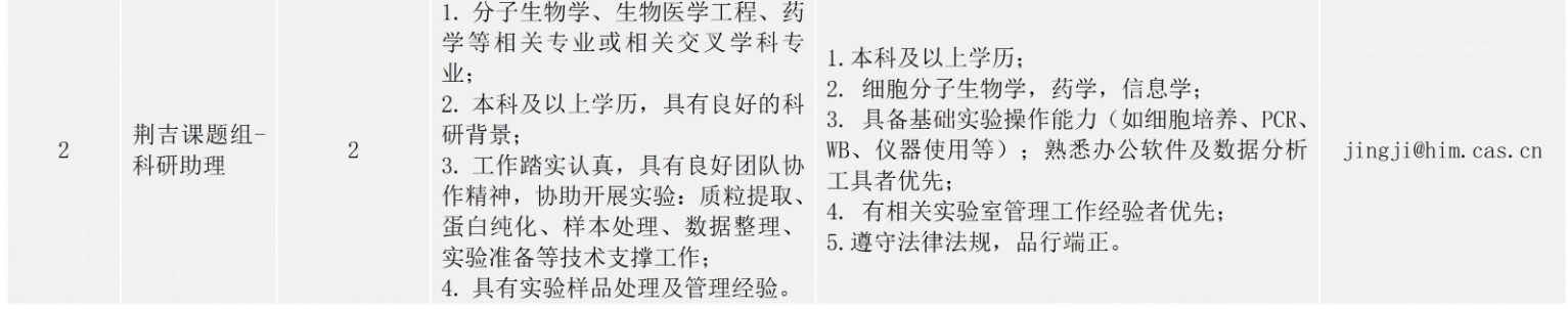 中国科学院杭州医学研究所科研助理招聘启事