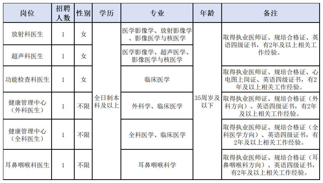 1、其他要求:面向社会招收的住院医师如为普通高校应届毕业生的,其住培合格当年在医疗卫生机构就业,按当年应届毕业生同等对待。经住培合格的本科学历临床医师,与临床医学、口腔医学、中医专业学位硕士研究生同等对待(住培合格证书上的培训专业原则上应当与选聘岗位的专业或类别要求相一致),以上人员需在规定时间内取得住培结业考试合格证书。