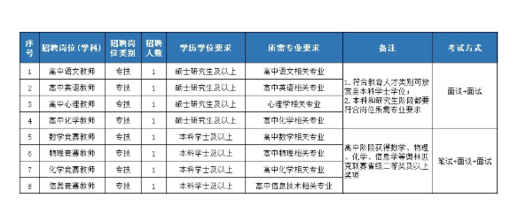 因发展需要,学校赴浙江师范大学公开招聘高校优秀毕业生8名,岗位如下: