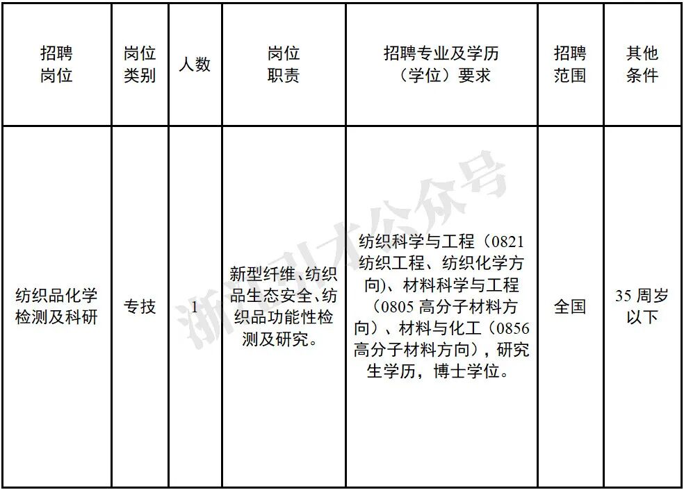 根据《宁波市事业单位公开招聘工作人员实施办法》和《宁波市市场监督管理局局属事业单位公开招聘工作人员实施细则》有关规定,宁波市市场监督管理局局属事业单位宁波市产品食品质量检验研究院(宁波市纤维检验所)决定面向社会公开招聘事业编制工作人员1名。现就有关事项公告如下: