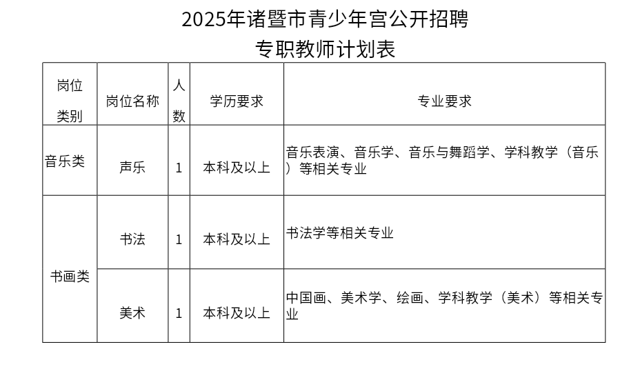 本次面向社会计划招聘专职教师3名,具体岗位、人数、学历、专业等资格条件详见下图。