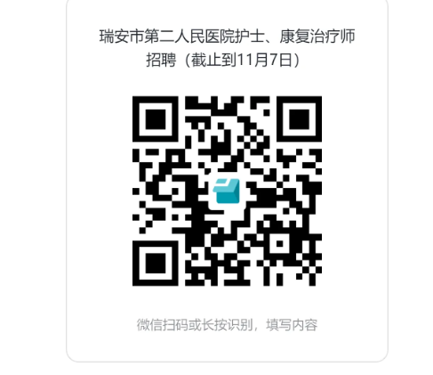 瑞安市第二人民医院护士、康复治疗师招聘5人公告