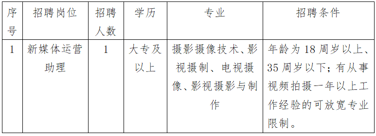温州白鹿传媒有限公司为温州市鹿城区人民政府直属国有企业温州市鹿城区文旅传媒集团有限公司的全资子公司,现因公司工作需要,决定面向社会公开招聘其他用工形式工作人员1名,有关要求如下:
