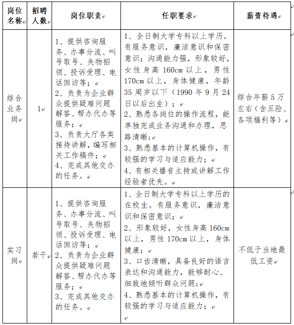 因公司发展需要,招聘项目综合业务岗1人,实习生若干,具体招聘公告如下: