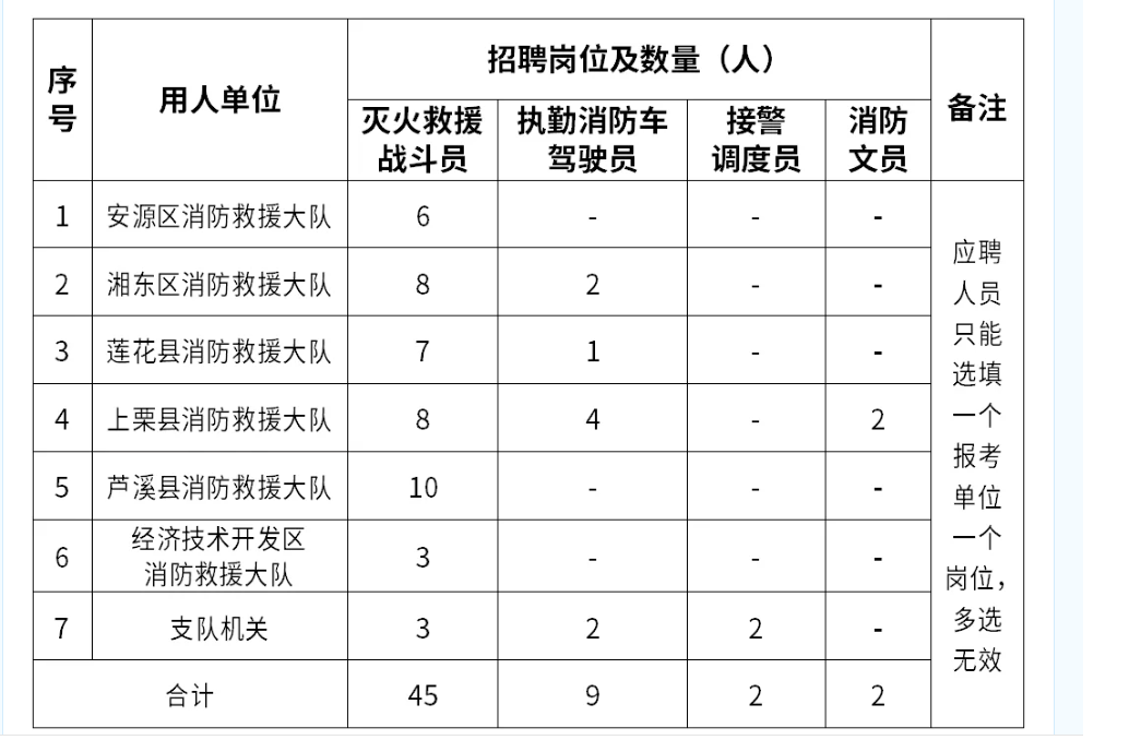 本次计划面向社会公开招聘政府专职消防队员56人、消防文员2人。若执勤消防车驾驶员岗位人员招聘不足,则剩余聘用岗位调剂为灭火救援战斗员岗位。