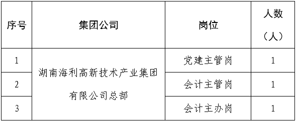 详见《湖南海利高新技术产业集团有限公司总部公开招聘岗位任职要求与岗位职责》(见附件1)。