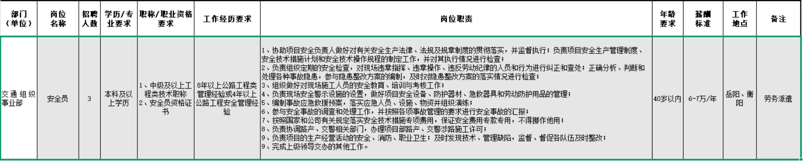 (五)应聘人员须服从湖南高速物流发展有限公司对其工作岗位的统一调剂和安排,如不服从安排视为自动放弃。