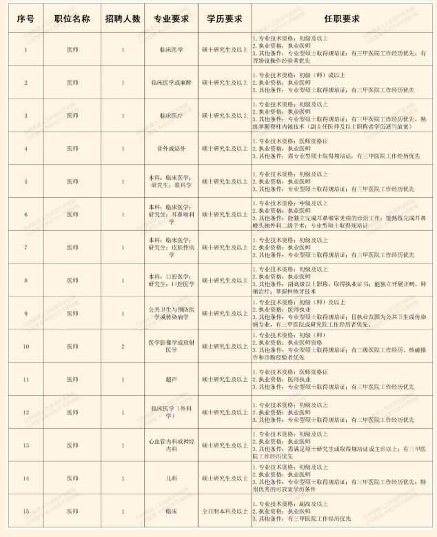 融通人力资源开发有限公司受武警湖南总队医院委托,面向社会发布招聘信息,具体内容如下: