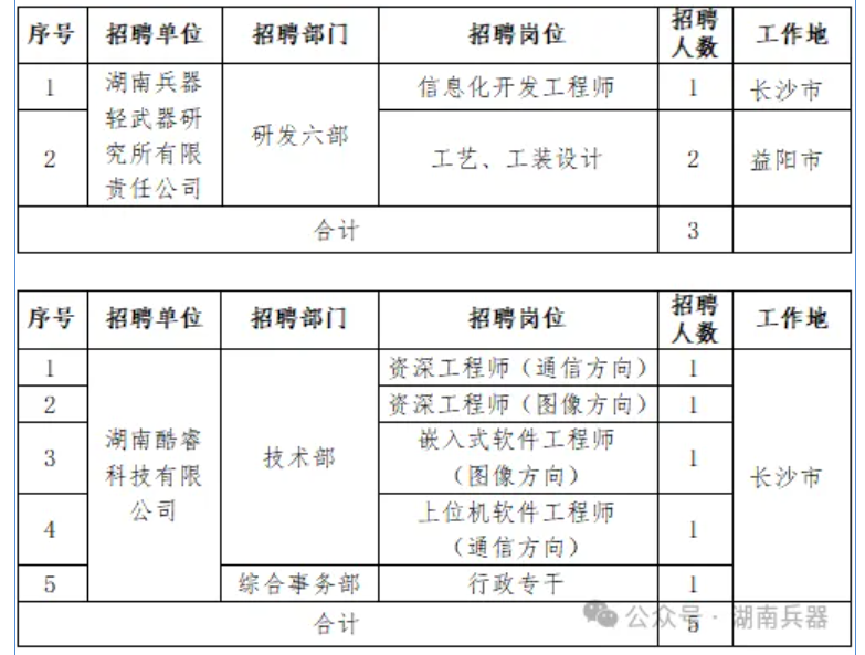根据经营发展需要,湖南省兵器工业集团股份有限公司现有两家子公司面向社会公开招聘工作人员,现将有关事项公告如下: