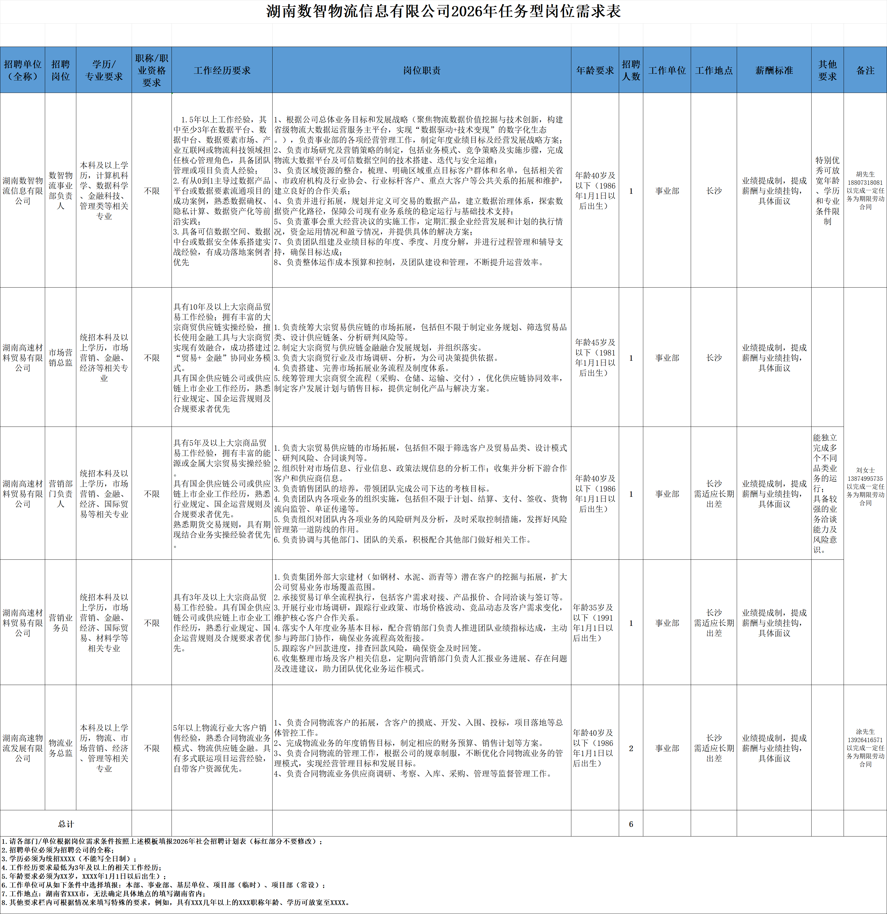 根据企业发展需要,湖南数智物流信息有限公司及所属子公司现面向社会公开招聘任务型人员。现将有关事项公告如下: