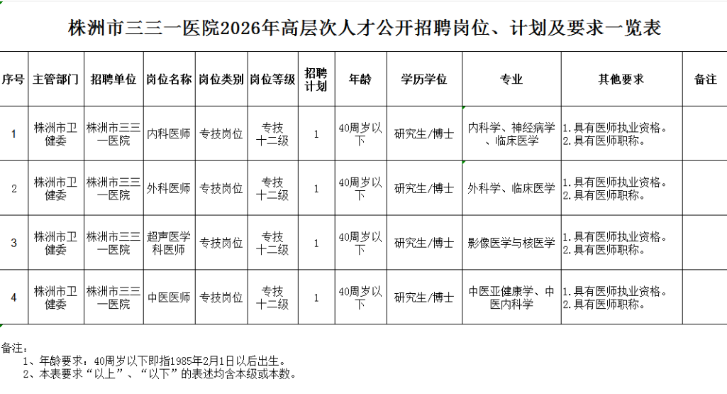 招聘信息通过株洲市人力资源和社会保障局官网、株洲市三三一医院官网面向社会公开发布。其他环节相关信息均在株洲市三三一医院官网发布。