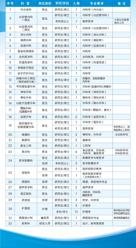 医院长期招聘各临床医技科室博士等高层次人才,人数不限。