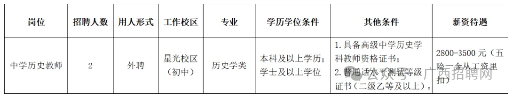 根据学校工作需要,南宁市第十中学星光校区(初中部)面向社会招聘教职工,具体岗位如下: