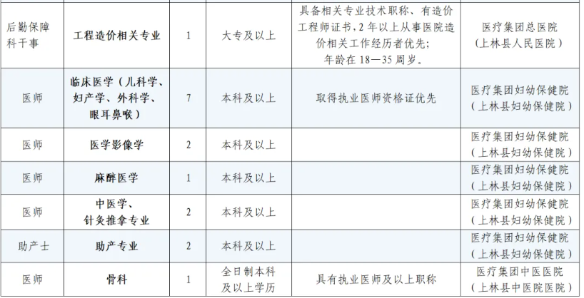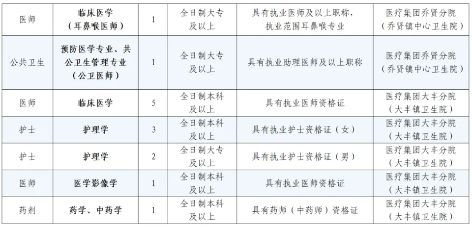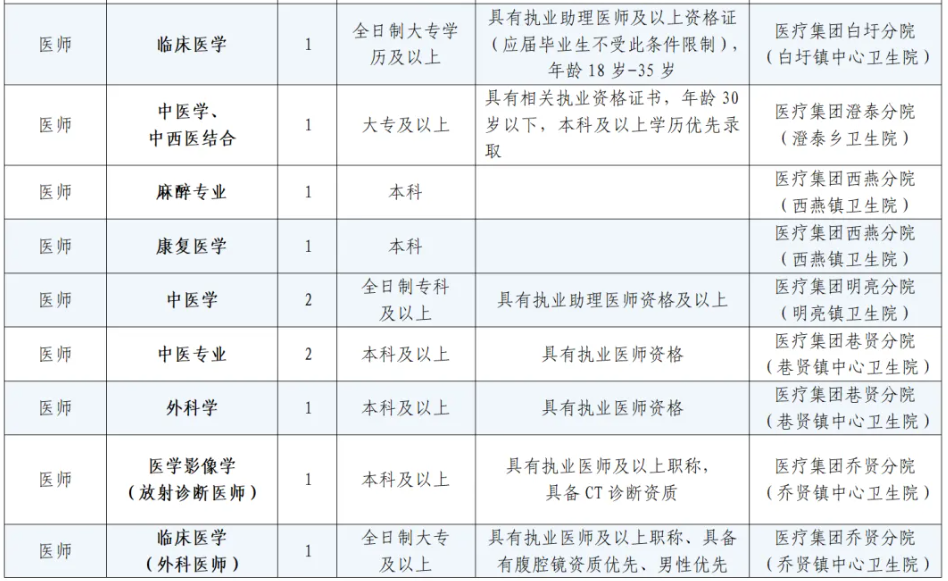 (三)学历及资质要求:具备相应的学历,各专业技术岗须取得相应的执业准入资格或专业技术资格;