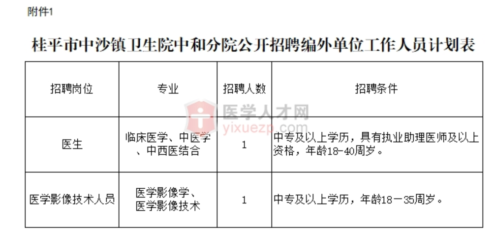 桂平市中沙镇卫生院中和分院是一所集医疗、预防、保健为一体的综合性一级综合公立卫生院,根据卫生院业务发展和人才队伍建设需要,经研究,桂平市中沙镇卫生院中和分院现面向社会公开招聘2名编外工作人员,现将有关事项公告如下: