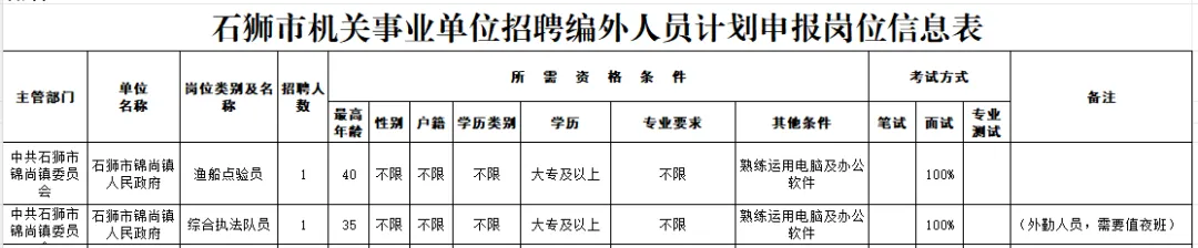 因工作需要,石狮市锦尚镇人民政府决定面向社会公开招聘编外工作人员。现将有关事项公告如下: