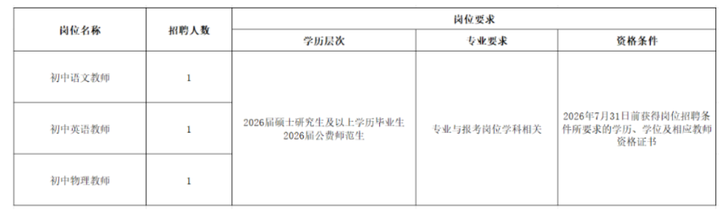 为加强我校教师队伍建设,切实做好学校教师队伍配备,西安高新区第四初级中学面向2026届毕业生公开招聘语文、英语、物理教师。