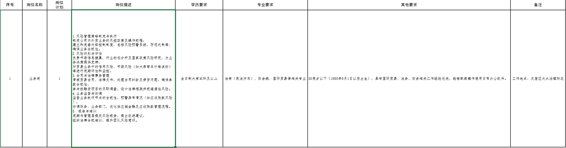 (二)招聘岗位:业务岗(详见附件1)。
